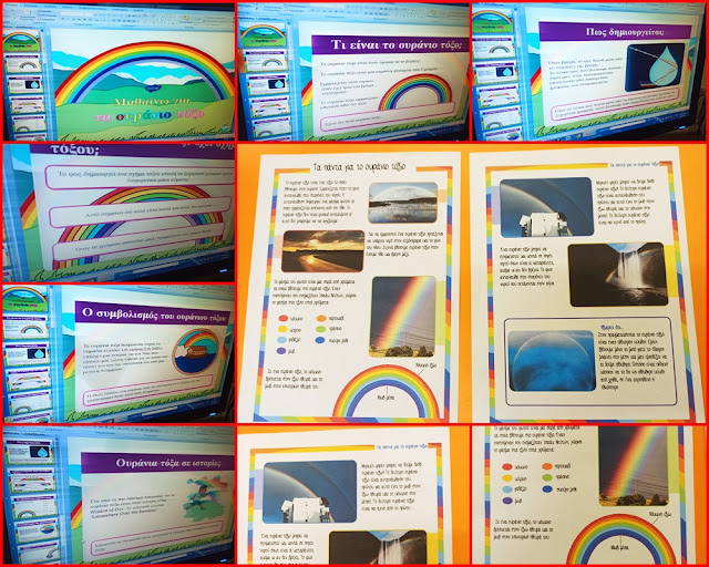 Στη συνέχεια, μάθαμε για το ουράνιο τόξο, πότε σχηματίζεται, γιατί , από τι είναι φτιαγμένο, πόσα και ποια χρώματα το αποτελούν, ποιο είναι πραγματικά το σχήμα του ουράνιου τόξου